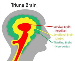 İnsan beyninin içerdiği katmanlar, evrimsel gelişimi özetleyen bir niteliğe sahiptir. Nörobilimci Paul D. MacLean’in “Triune brain” modeline göre beynin bedenle birleştiği noktada, beyin sapında R-kompleks (Reptilian kompleks – sürüngen beyin) adı verilen bir bölüm bulunur. Beynin bu bölümü evrimin ilkel aşamalarındaki gelişimin eseri olduğundan dolayı kuşlarda, sürüngenlerde ve memelilerde ortak olarak bulunur. Evrim süreci içerisinde gelişen insan beyni, R-kompleks üzerine duyguları yöneten bir limbik sistem ve mantığın, muhakeme kabiliyetinin yönetildiği bir neokorteks koyabilmiştir.
