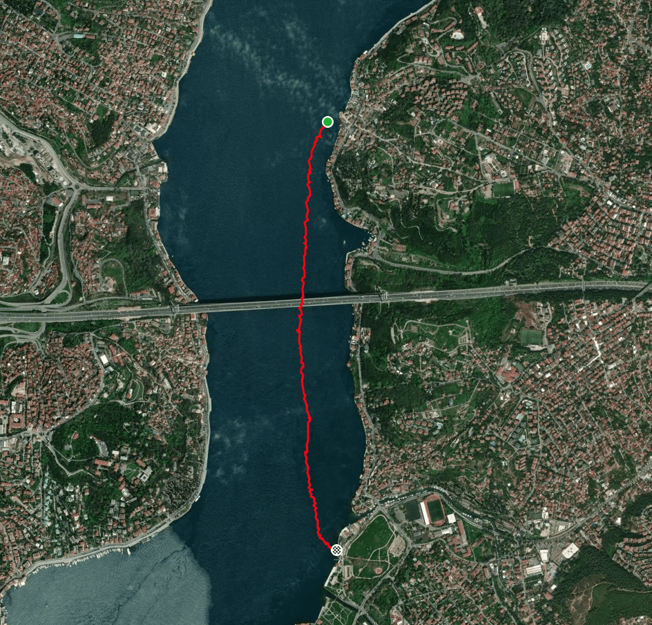 Yüzmede izlenecek rotanın oldukça önemli olduğunu ve belirli bir strateji yürütülmesi gerektiğini biliyordum. Planımı da buna göre yapmıştım. Bu planı belirleyen şey esasında boğazdaki akıntıların dinamiğiydi. Her ne kadar boğaz ortasında Kuzey – Güney yönlü güçli bir yüzey akıntısı olsa da, kıyıya yaklaştıkça özellikle boğaz hattının girinti ve çıkıntıları nedeniyle ters yönlü anaforlar ve girdaplar oluştuğunu biliyordum. Eğer mesafeyi kısa tutmak gibi bir hedefle boğazda kıyı hattından yüzmeye kalkarsanız bu ters kıyı akıntıları nedeniyle mesafeyi kısaltayım derken gafil avlanıp çok yorucu bir yüzme etabı kat etmek zorunda kalabilirsiniz. Bu nedenle kıyıdan yüzmek yerine önce geniş bir açıyla boğazın ortalarına doğru yüzüp sonrasında ise açıktan kıyıya paralel şekilde yüzmek gibi bir planlama yaptık. Bu plan çerçevesinde suya girer girmez açığa doğru yüzmeye başladım. Tabi yüzmenin hengamesi içerisinde önümde kıyıya paralel yüzmeye çalışanlar nedeniyle bir süre istediğim açıyı yakalamakta çok zorlandım. Sonrasında etrafımdaki alanın açılmasıyla birlikte açığa doğru yüzdüm. Açıklığın derecesini ise köprünün büyüklüğünü baz alarak yapmayı kararlaştırmıştık. Tecrübeli kişilerden aldığım taktiğe göre olması gereken açıklık köprü ortasının biraz soluydu. Dolayısıyla açığa yüzme sırasında ara ara kafamı kaldırıp köprüye göre konumumu belirlemeye çalıştım. İstediğim açıklığa geldikten sonra açımı düzeltip kıyıya paralel yüzmeye başladım. Bu andan itibaren kıyıya çok yakın yüzen bir sürü insan olduğunu gördüm. Yarış öncesinde söylendiği gibi akıntı çok düşük seviyedeydi. Dolayısıyla kıyıdaki ters akıntılar da beklenen seviyeden düşük olmalıydı. Kıyıya yakın yüzenler bu ters akıntılardan ne derece etkilendiler bilemiyorum ama yüzme esnasında açıktan yüzmenin daha akıllıca ve her şeyden öte daha keyifli olduğunu düşünüp durdum.