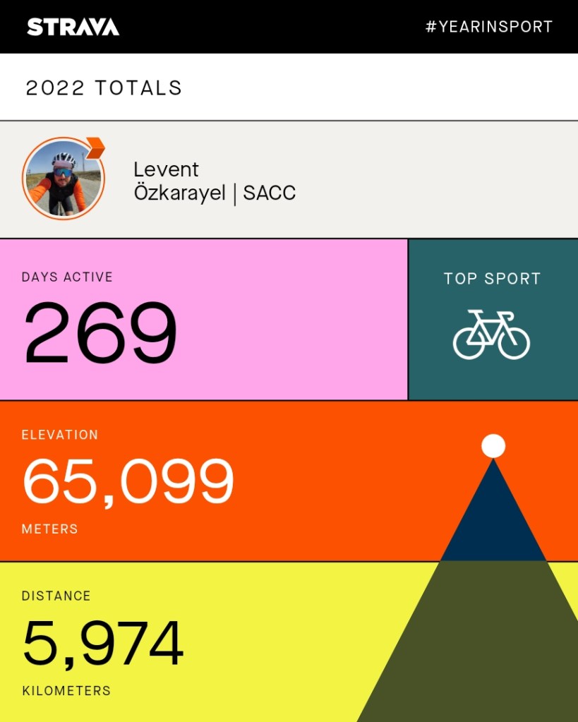 Bugün 31 Aralık. Geri dönüp yılın Strava verilerine baktığımda sporla geçen 269 günün geride kaldığını görüyorum. Covid, gıda zehirlenmesi ve bazı zorunlu gezileri düşündüğümde fena bir sayı değil. Yıl boyunca toplam 210 saat bisiklet sürmüş, 80 saat koşmuş ve 19 saat yüzmüşüm. Mesafelere baktığımda 5088 km’yi bisikletle, 803 km’yi ise koşarak aşmışım. Bu mesafeleri kat ederken toplamda 65,099 m tırmanmışım. (1m’yi gece 12’ye kadar merdivenleri çıkarak tamamlayacağım :))